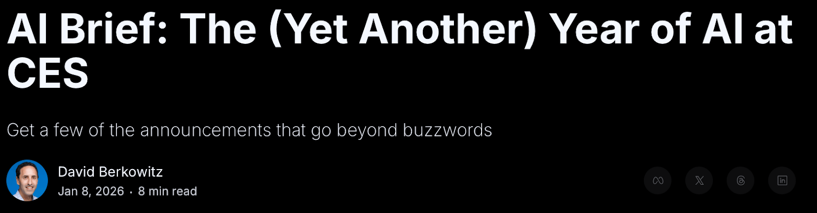 *Another sign of hype fatigue from the “most powerful tech event in the world”: even the AI Brief newsletter from the advertising/marketing industry publication Marketecture struggled to feign excitement about the AI-flavored word salads on offer.